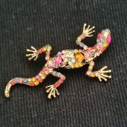 Färggrann och glädjande brosch : Gecko-ödla