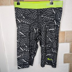 Nike svart/vita/limegröna capri-träningsbyxor, storlek L