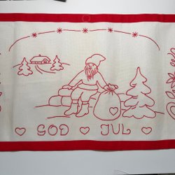 Härlig bonad med landskap-, djur- och vintermotiv handbroderad
