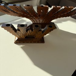 2 härliga ljusstakar i trä bruna antika retro vintage