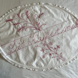 ”Låt kaffet smaka” Handbroderad bonad eller duk, 63x 46 cm