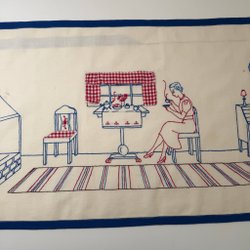 Bonad med charmigt broderad bild från hemmet