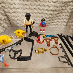 Från 70/80 talet Playmobil Figurer med Tillbehör. Dykare, polis cyklist