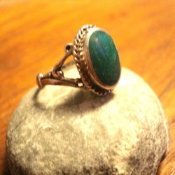Ring i sterling silver med grön sten