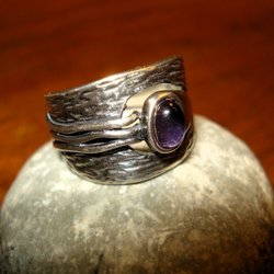 Bred Tuff Silverring med lila sten