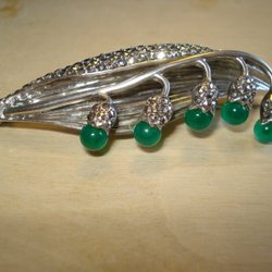 BROSCH I ÄKTA SILVER MED GRÖNA STENAR OCH MARKASITER- liljekonvalj