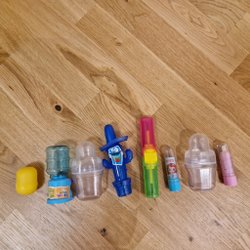 Små leksaker, tomma container från godis