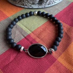 Armband svart matt Agat & hjärta silver