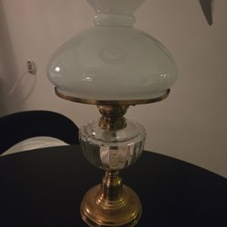 Fotogenlampa i mässing och glas