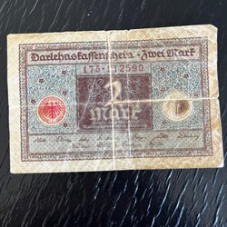 Tyskt "Darlehnskassenschein" 2 Mark sedel