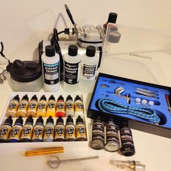 Oanvänt Airbrush-Set Inklusive Färger m.m.