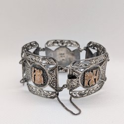 Peru Vintage Armband i Silver och 18K Guld med Inka Motiv