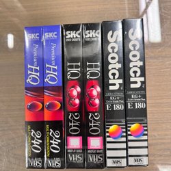 6 st VHS-band, oanvända och fortfarande förseglade.