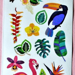 STICKERS: TROPISKA FÅGLAR OCH VÄXTER