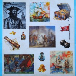 3 ARK STICKERS: PIRATER, SKATTKISTOR, KIKARE mm