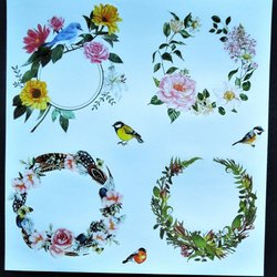 2 ARK STICKERS: BLOMSTERKRANSAR, FÅGLAR
