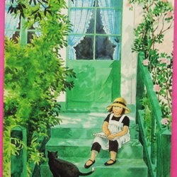 VYKORT: LENA ANDERSON. LINNEA I MÅLARENS TRÄDGÅRD