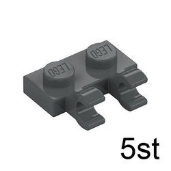 5st Platta med hållare 1 x 2 Dark Stone Gray (LEGO Design ID: 49563)