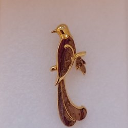 Fågel brosch I guldfärgad metall och kork