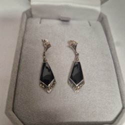 Örhängen i silver med svart sten