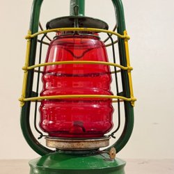 Feuerhand fotogenlykta – grön med rött glas – klassisk stormlykta