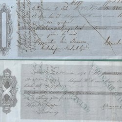 5 växlar och 1 kvitto från 1870-talet, format ca 10x28 cm.