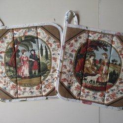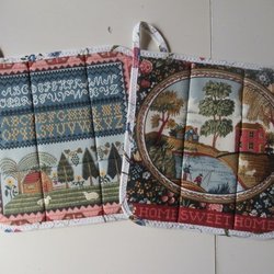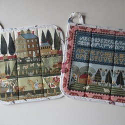 Två grytlappar med vackra unika motiv lite nostalgi