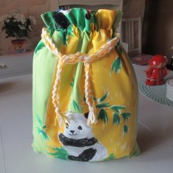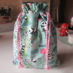 REAR ut: Panda Snoddpåse i tyg, fodrad inuti, förvaringspåse kasse tygpåse