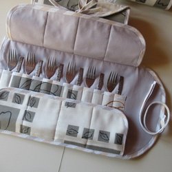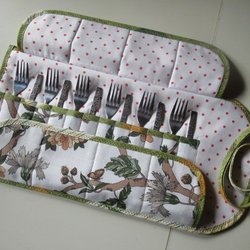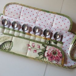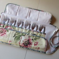 1 st Bestickfodral i tyg vadderad till Tårt-Dessert-Förrätt-Bestick fodral