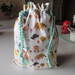 REAR ut: Glada djur Snoddpåse i tyg, fodrad inuti, förvaringspåse kasse tygpåse