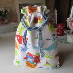 REAR ut: Pirater Snoddpåse i tyg, fodrad inuti, förvaringspåse kasse tygpåse