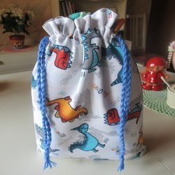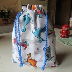 REAR ut: - Dinosarier Snoddpåse i tyg fodrad inuti, förvaringspåse kasse