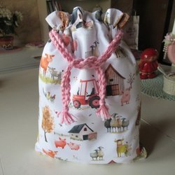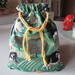 REAR ut: Lantdjur Snoddpåse i tyg, fodrad inuti, förvaringspåse kasse tygpåse