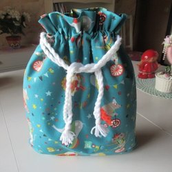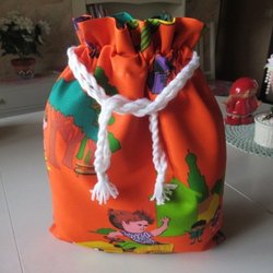 REAR ut: Barn Snoddpåse i tyg, fodrad inuti, förvaringspåse kasse tygpåse