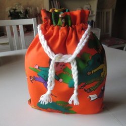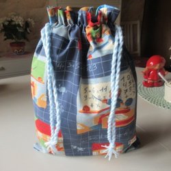 REAR ut: Skoltime Snoddpåse i tyg, fodrad inuti, förvaringspåse kasse tygpåse