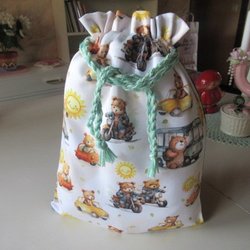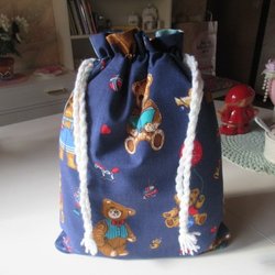 REAR ut: Nallebjörnar Snoddppåse i tyg, fodrad inuti, förvaringspåse kasse påse