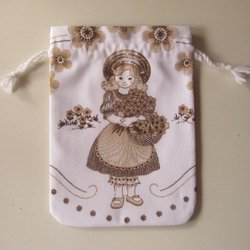 Söt flicka med blomsterkorg snoddpåse förvaringspåse fodrad inuti