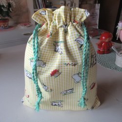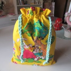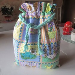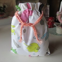 REAR ut: Kaniner Snoddpåse i tyg, fodrad inuti, förvaringspåse kasse tygpåse