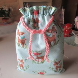 REAR ut: Skogsdjur Snoddpåse i tyg, fodrad inuti, förvaringspåse tygpåse