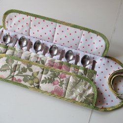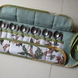 1 st Bestickfodral till kaffeskedar i tyg vadderad skedar fodral