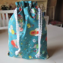 REAR ut: Cirkusdjur Snoddpåse i tyg, fodrad inuti, förvaringspåse kasse tygpåse