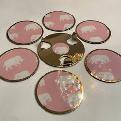 6x Glasunderlägg & Ställ Guldfärgad Laminerad Tapet Rosa Elefant Estrid Ericson