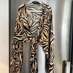 Bershka svart, beige och brun blus, storlek M