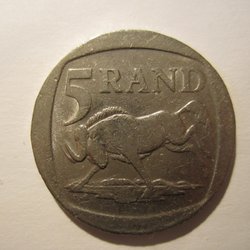Sydafrikansk 5 Rand med Gnu 1995.