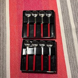 8 st Rostfritt Stål glöggskedar med rött handtag RETRO
