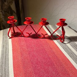 Bo Norell Sweden adventsljusstake röd metall med hjärtan