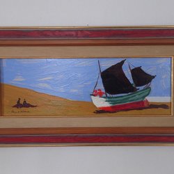Tavla, målning av Ulla Kero, "Segelbåt på havet"