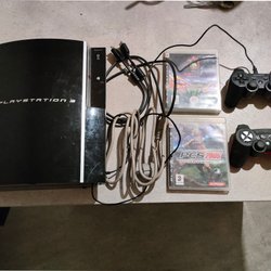 Playstation 3 med spel och handkontroller