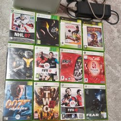 Xbox 360 med spel och handkontroll