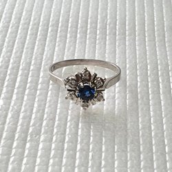 0,18 ct Diamantring i 18k vitguld stl. 17,75 med safir
